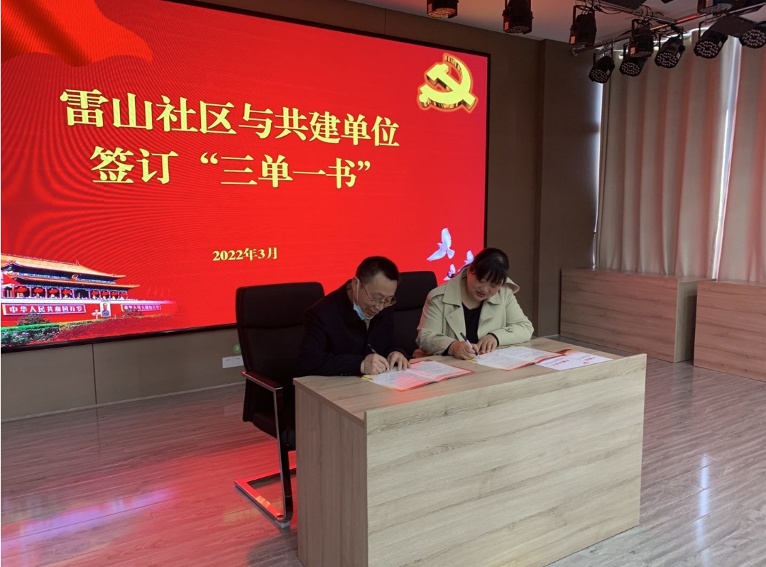2022年3月29日,鄂城区委编办与联点共建单位雷山社区签订了联点共建责任书,明确了区委编办与雷山社区联点共建的项目清单,目标任务。有效地推动了区委编办下沉社区服务社区工作走深走实。在上次责任书签订后,党员干部做到沉下身、沉下心、沉下力,自觉与社区人员一起苦,一起干,一起乐,确保每一项清单做实做细。