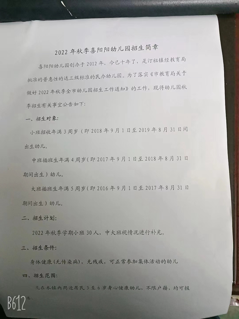 民办学校——汀祖镇喜阳阳幼儿园