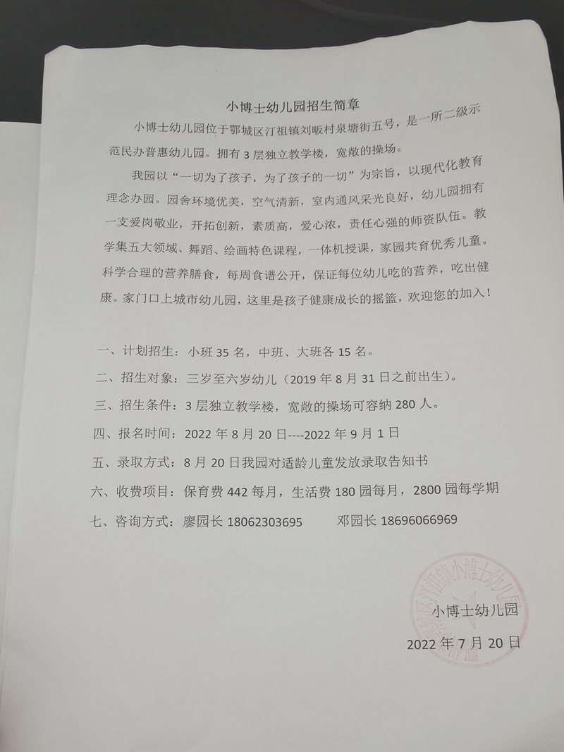 民办学校——汀祖镇小博士幼儿园