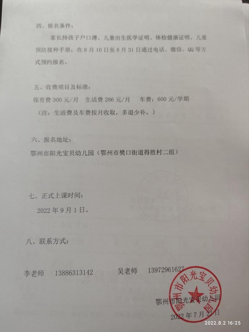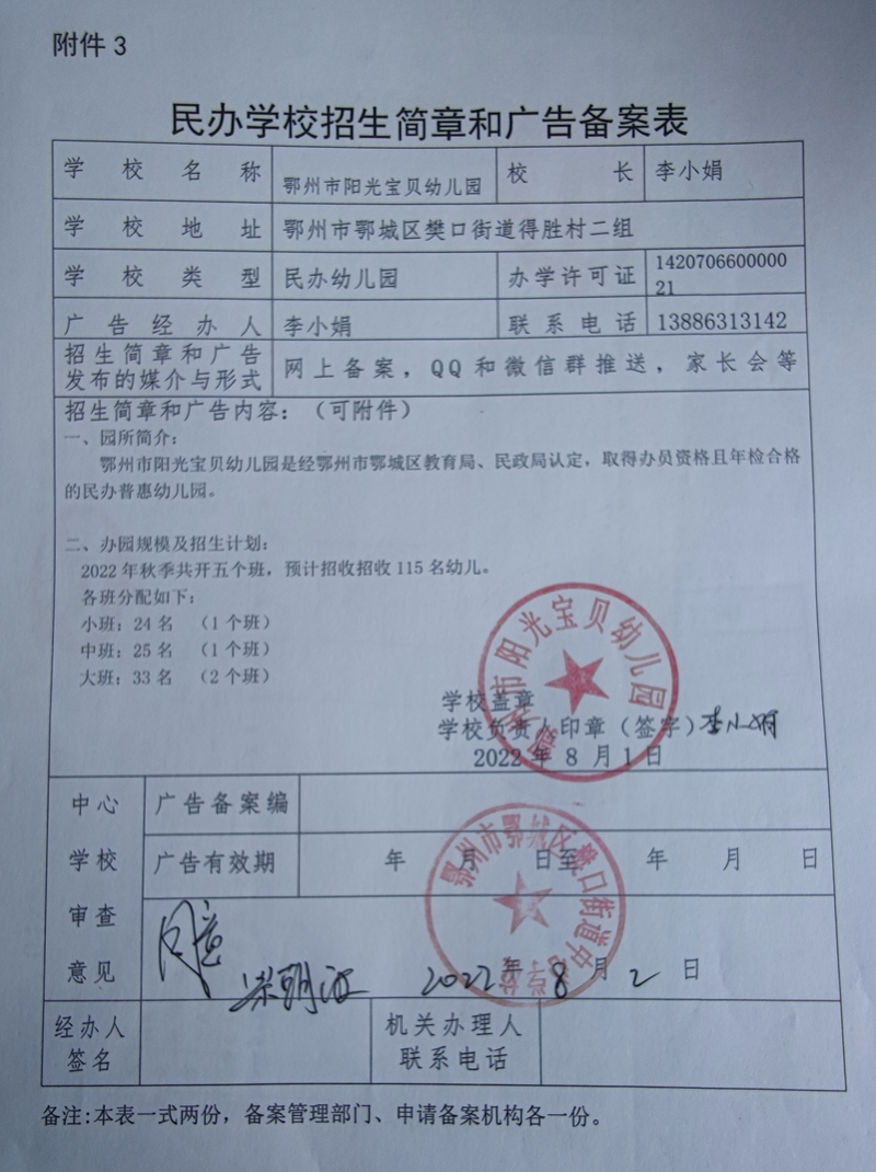 民办学校——阳光宝贝幼儿园