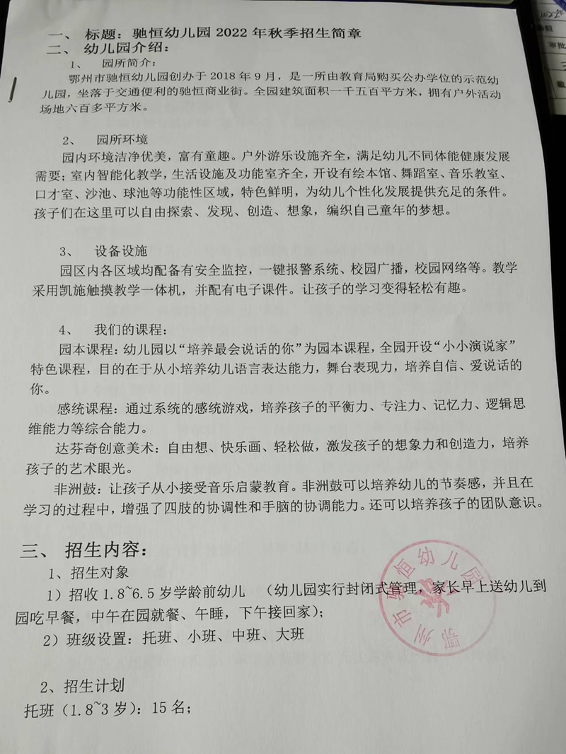民办学校——凤凰街道驰恒幼儿园