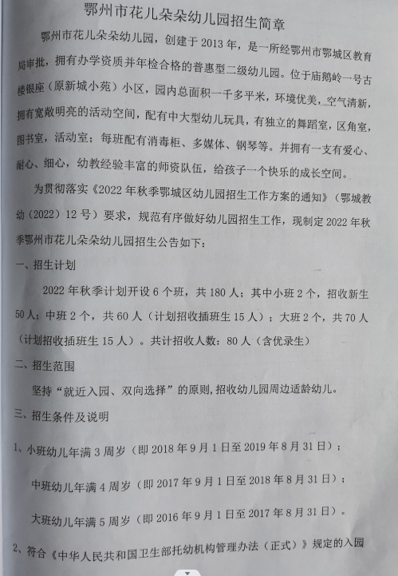 民办学校——古楼街道花儿朵朵幼儿园