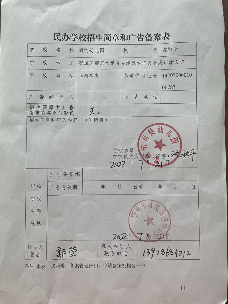 民办学校——鄂州市司徒幼儿园