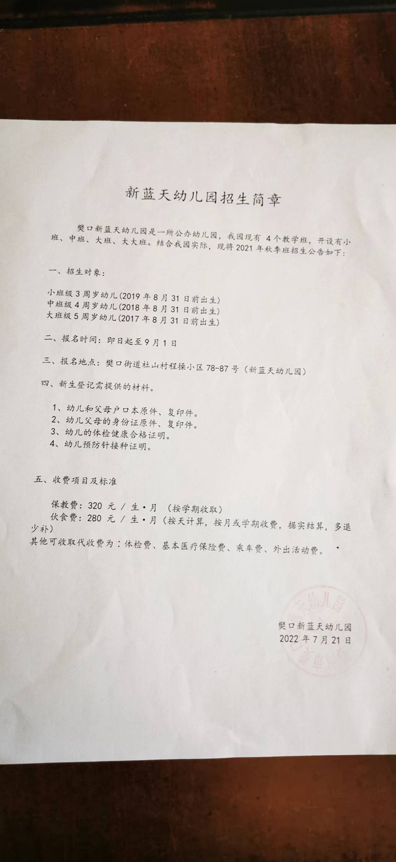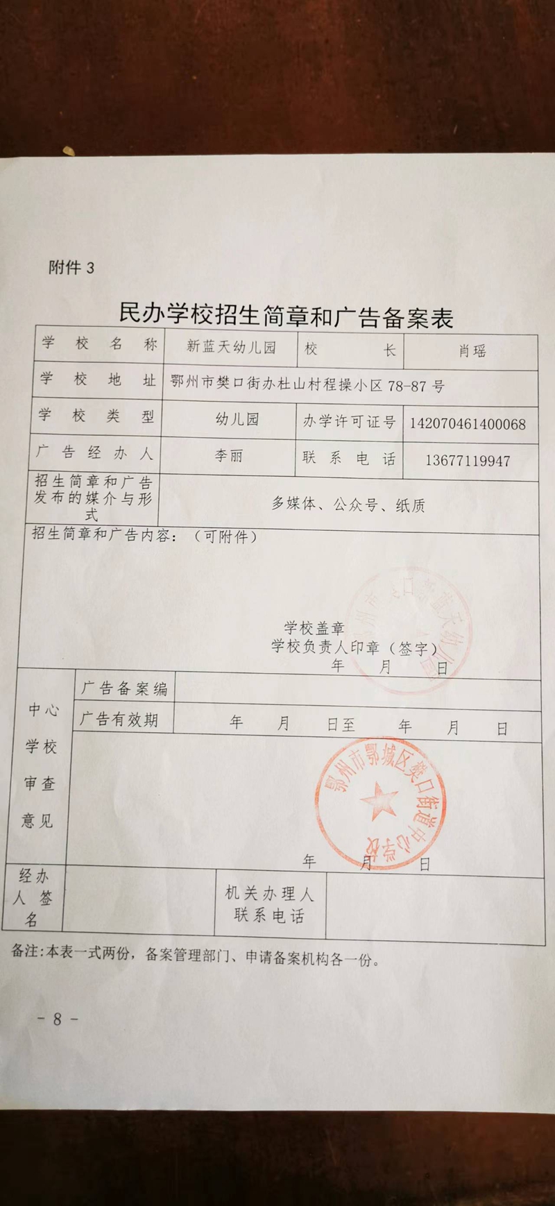 民办学校——樊口街道新蓝天幼儿园