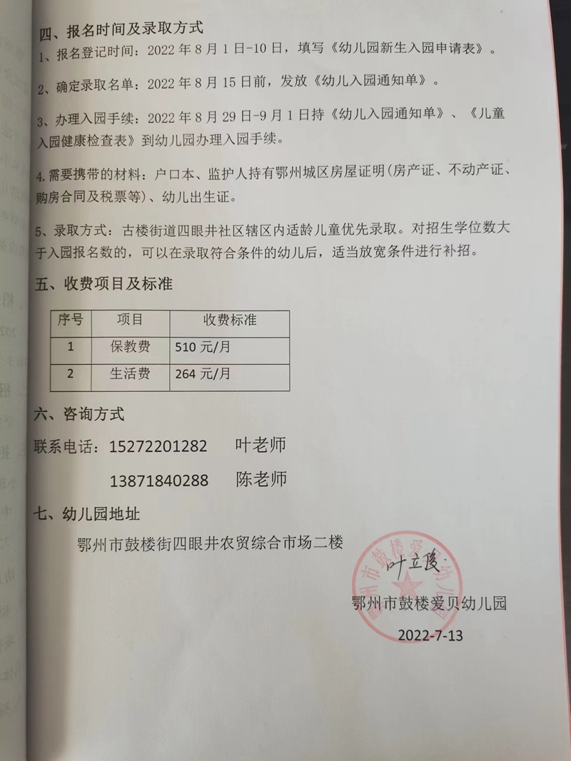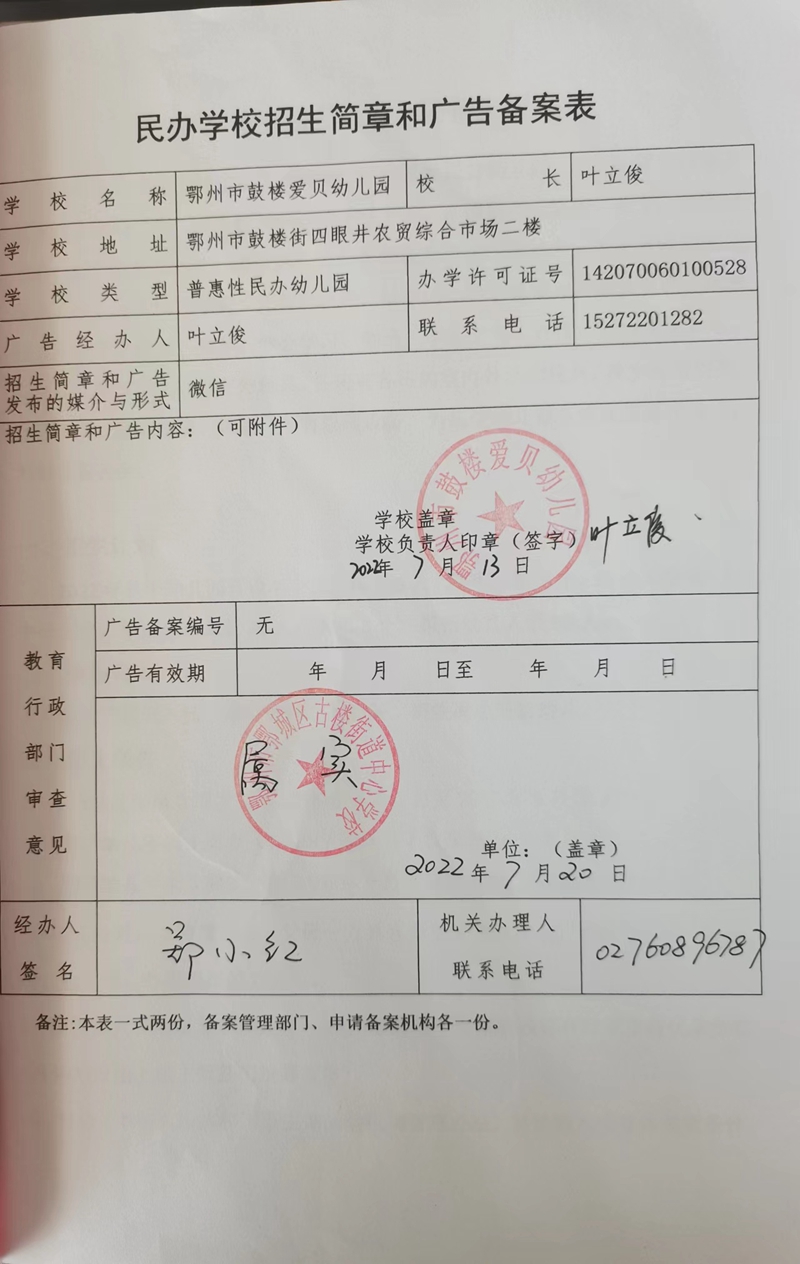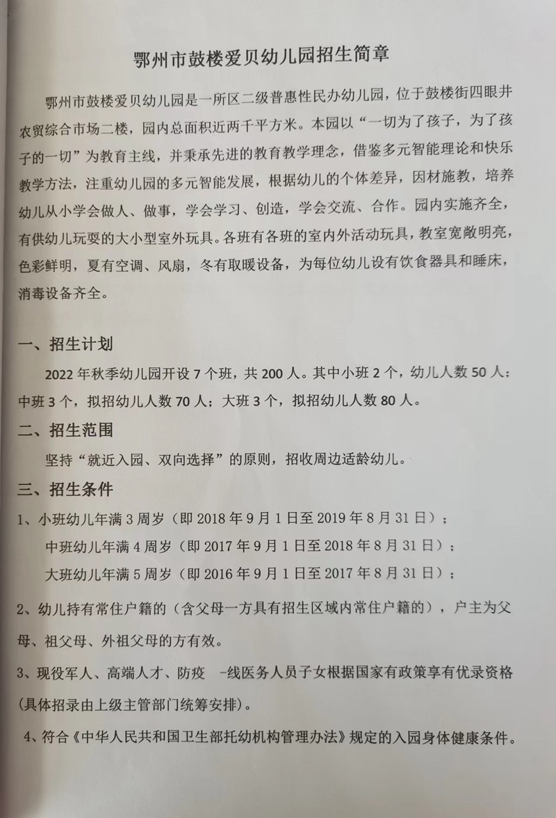 民办学校——鄂州市鼓楼爱贝幼儿园