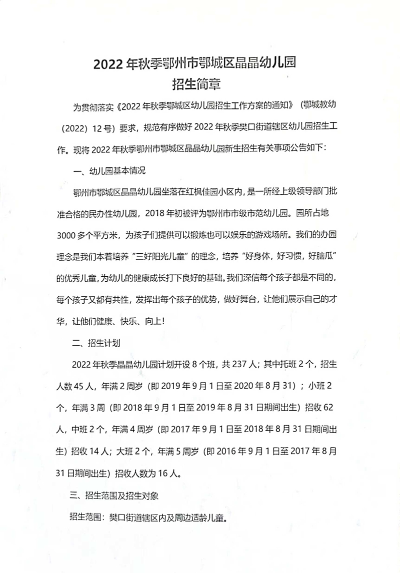 民办学校——鄂州市晶晶幼儿园