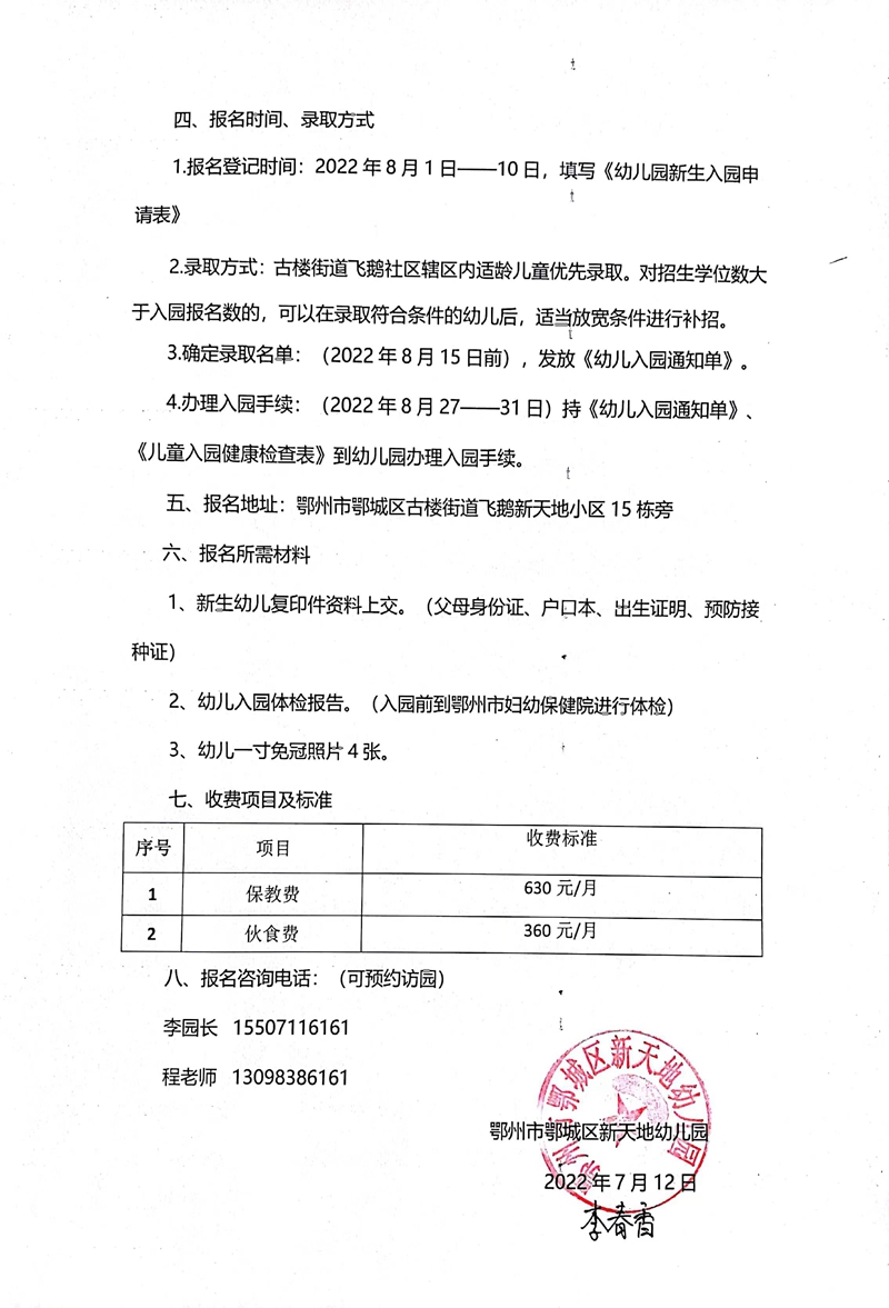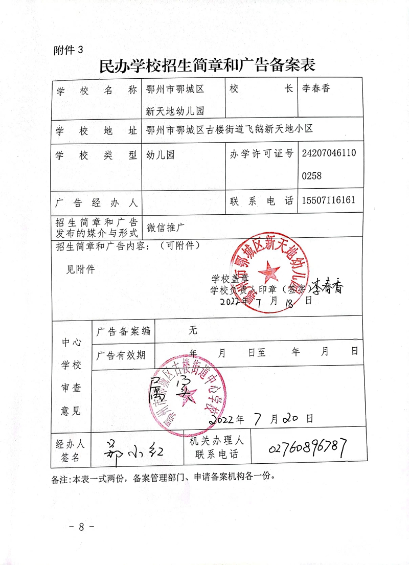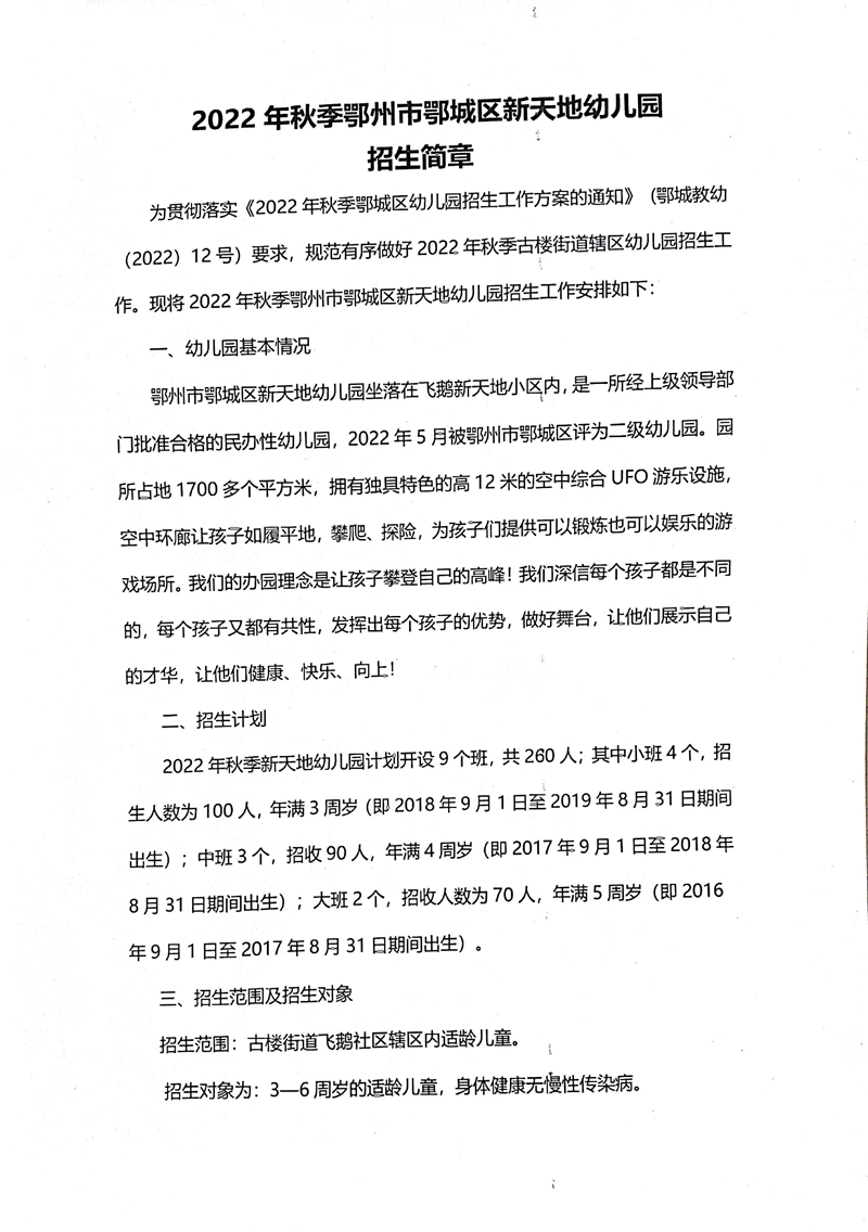 民办学校——鄂城区新天地幼儿园