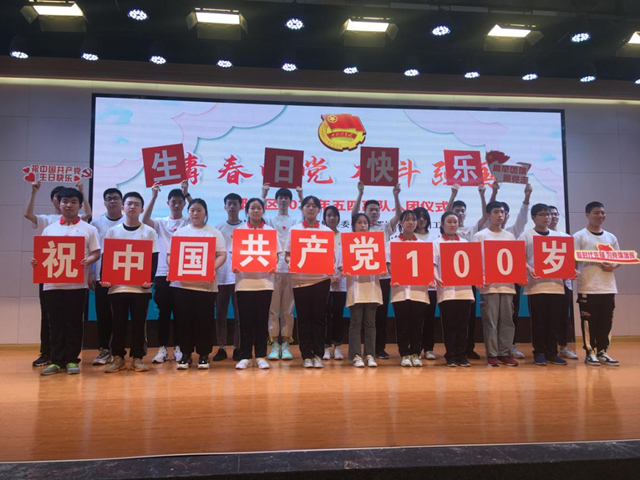 第二阶段,举行入团仪式。团区委向新发展团员颁发团徽,135名新发展团员一一佩戴上团徽,在团徽前庄严宣誓,“我志愿加入中国共产主义青年团,坚决拥护中国共产党的领导……”,全体团员心潮澎湃,热血沸腾,声音宏亮激昂,并为中国共产党100岁生日献礼。区教育局团工委和团区委有关负责同志为新团员宣讲团员义务和权利,送上祝福和勉励。