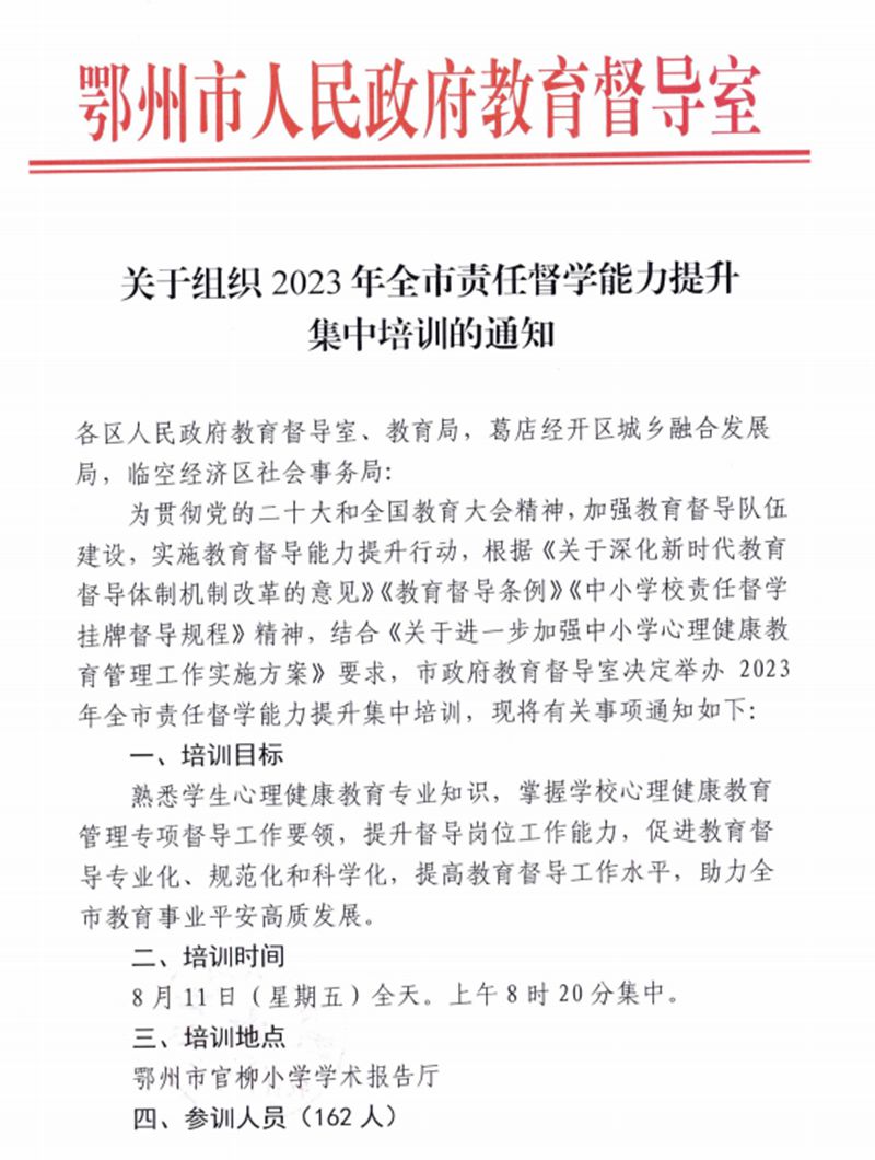 关于组织2023年全市责任督学能力提升集中培训的通知