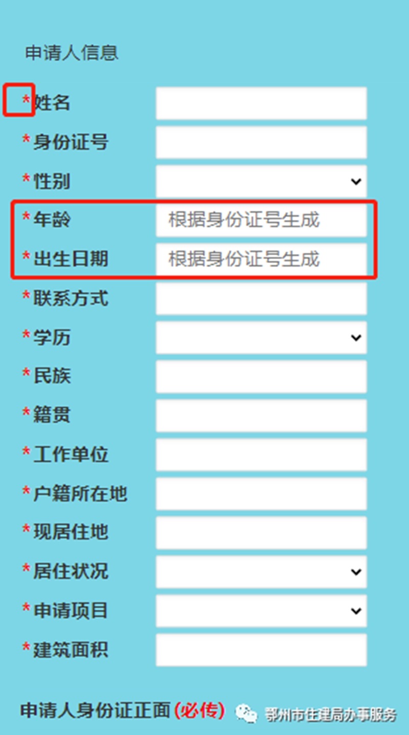 (三)进入申请页面,前边带红色星号的为必填项,年龄和出生日期根据身份证算出来,不用填写。