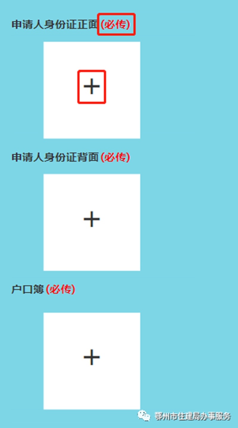 (四)带必填字样的资料必须上传,否则无法提交,上传方式点击加号,可以拍照或者相册选择图片上传。