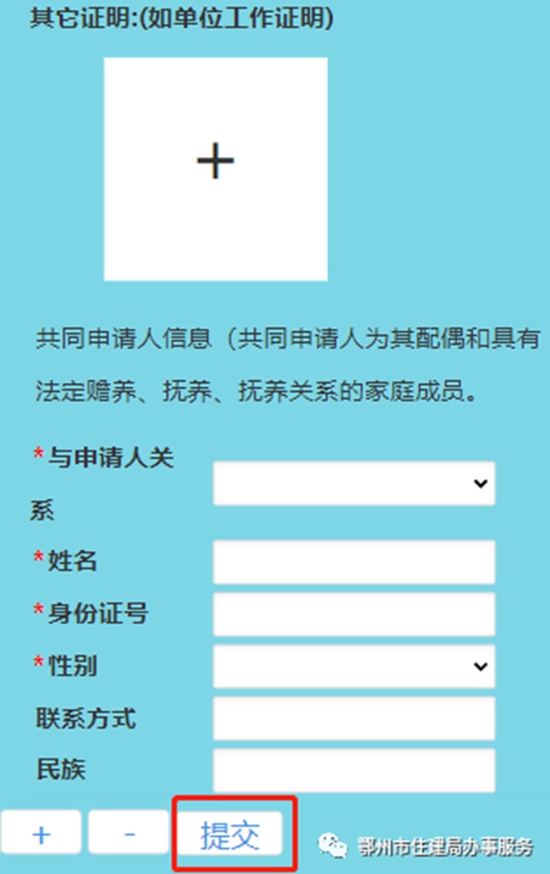 (五)共同申请人信息,最多添加五个,点击加减可以灵活增减。