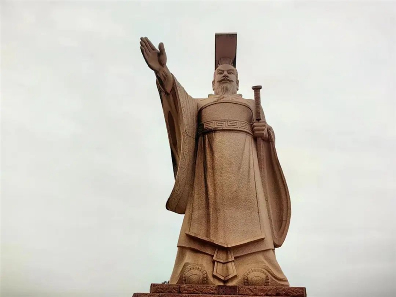 湖北省鄂州市滨江公园,一座总高11.8米的孙权像背靠长江,一手执剑,一手指向前方,似乎向世人昭示着与鄂州的不解之缘。