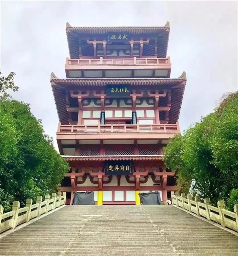 山顶武昌楼是三国时期东吴军事瞭望塔,后人据孙权“以武而昌”,命名为武昌楼。登楼远眺,鄂州黄州景观尽收眼底,万里长江,烟波浩渺。