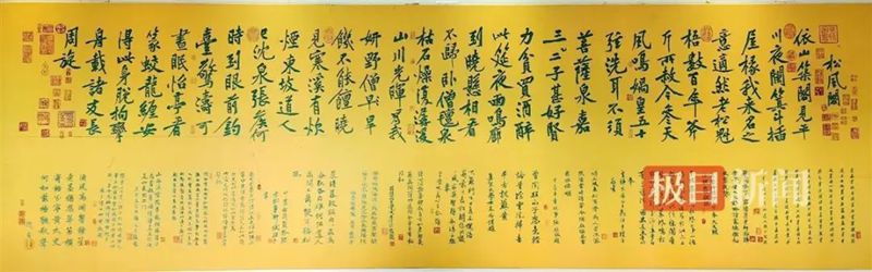 时值中秋国庆双节,极目新闻记者随友人登临西山,桂香沁脾。松风阁矗立在古灵泉寺后方的一片树林中,迈进大厅,墙上的《松风阁》摹本赫然入目。