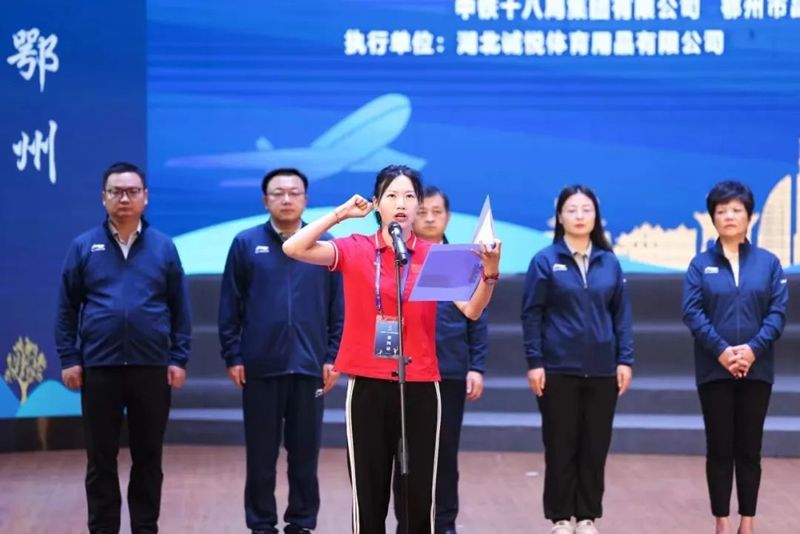 全体起立奏唱国歌,运动员、裁判员代表陆续上台进行庄严宣誓。