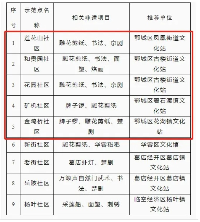 鄂州公布9个“非遗在社区”示范点!