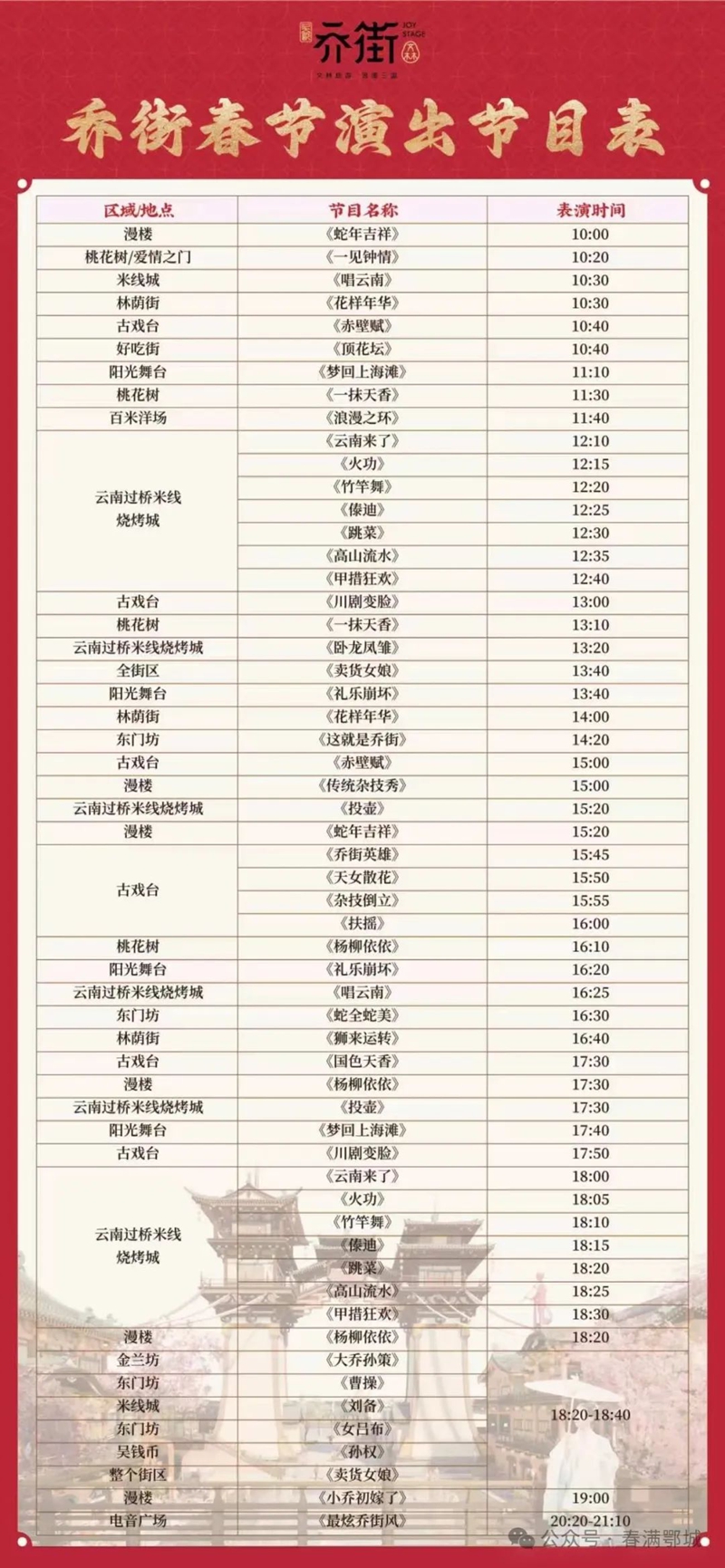 以“知音湖北·2025欢喜过大年——乔街非遗民俗年”为主题,有丰富的非遗活动和民俗活动。大年初一上午,市群艺馆、区文旅局、凤凰街办等单位,邀请周边区县多支舞龙舞狮、采莲船团队,展演精彩纷呈的非遗活动,同时,乔街各点位全天节目超过50场,各时段精彩不断,赢得观众阵阵喝彩。