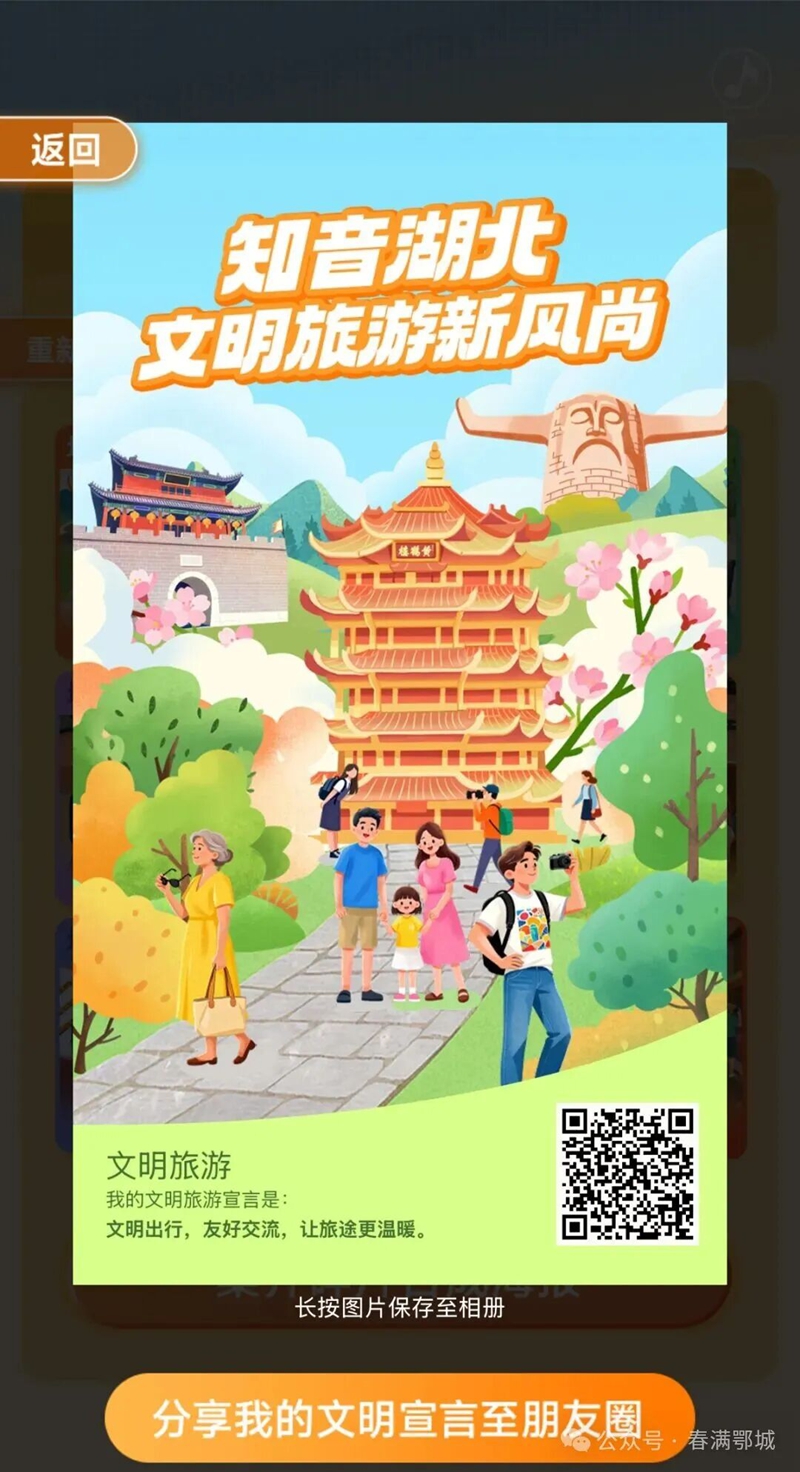 1.关注“湖北文旅”公众号,转发“文明旅游小游戏”给你的家人、朋友,每月将根据小游戏的分享次数进行排名,每月分享次数排名前20名的网友,每人赠送蒜鸟1个。