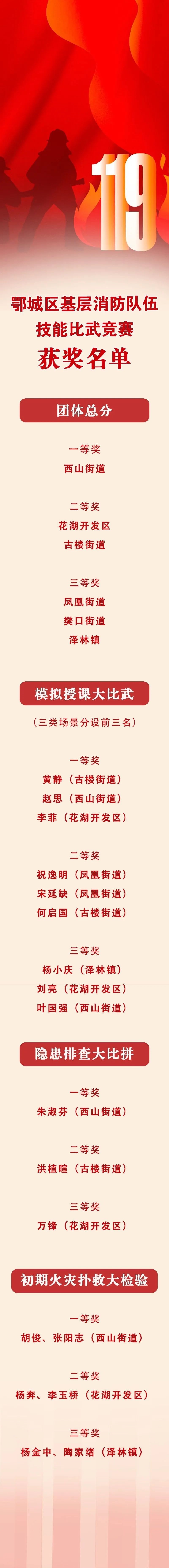经过公正严密的评审,比武最终产生模拟授课组获奖选手9名,隐患排查组获奖选手3名,初期火灾扑救实操组获奖选手6名。另评选出团体奖6名。