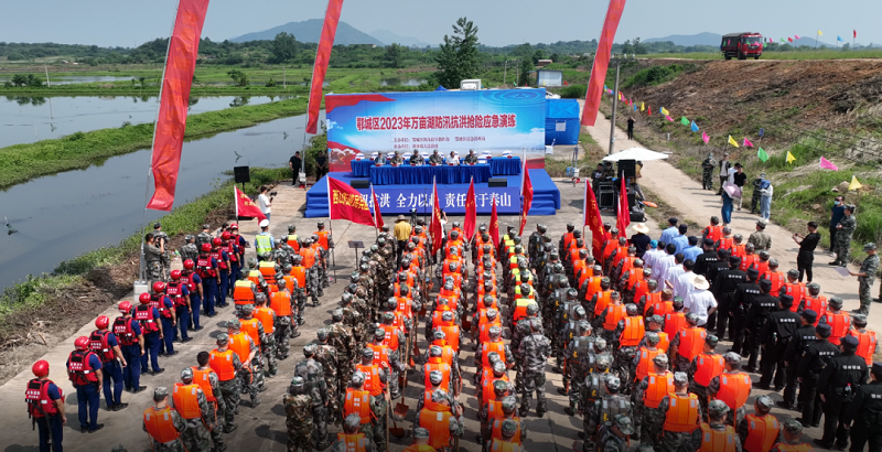 5月19日,鄂城区在泽林镇万亩湖组织开展2023年防汛应急演练,各镇、街和区防指相关成员单位、民兵应急人员共200余人等联合参演。
