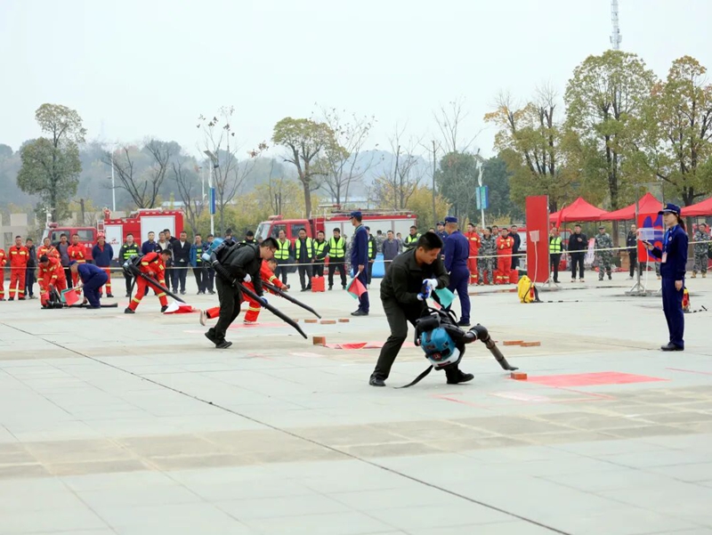 竞赛期间,区消防救援大队带来了精彩的技能演示。水泵接力操中,队员们默契配合构建远程供水线路;灭火装备综合操里,多器材协同作战尽显专业素养;举高喷射车威严挺立,无人机升空勘察,全方位展示了现代化消防救援实力。区应急管理局还开展新质生产力高端装备展示与培训,远程供水管线车、高压喷雾车、中小型水罐车等专业装备逐一亮相,详细讲解其在复杂地形灭火中的实战应用,让现场人员直观感受科技赋能应急救援的强劲动力。