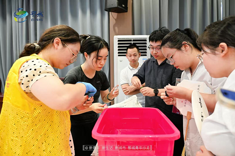 第二阶段“头脑风暴 互动砺行”将活动推向高潮。年轻干部们首先体验了别开生面的“清风漆扇”创作环节。在专业指导下,大家选取空白绢扇,围绕乡村振兴主题,挥洒创意,精心描绘。一幅幅饱含深意的扇面作品跃然呈现——有展现丰收喜悦的麦浪图景,有描绘美丽乡村的生态画卷,也有象征科技兴农的智慧符号。创作完成后,参与者们纷纷上台解读作品寓意,用艺术语言表达对乡村振兴的理解与憧憬。