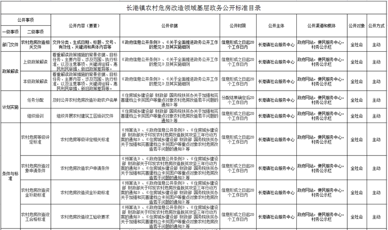 长港镇农村危房改造领域基层政务公开标准目录