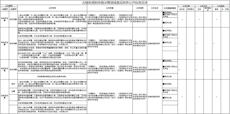 古楼街道财政预决算领域基层政务公开标准目录