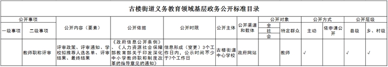 古楼街道义务教育领域基层政务公开标准目录