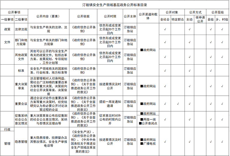 汀祖镇安全生产领域基层政务公开标准目录