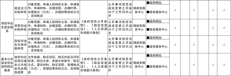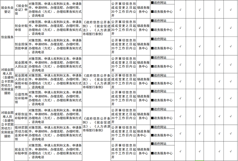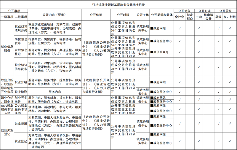 汀祖镇就业领域基层政务公开标准目录
