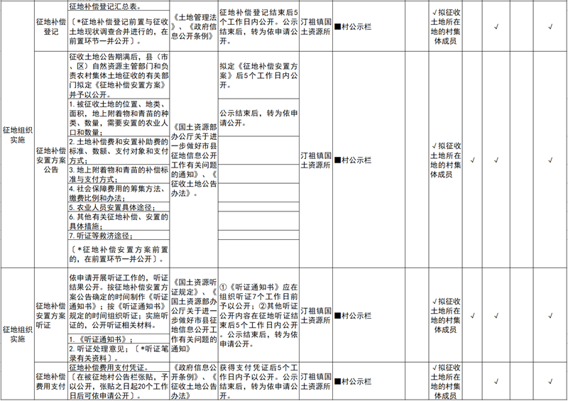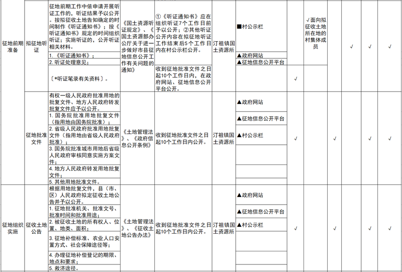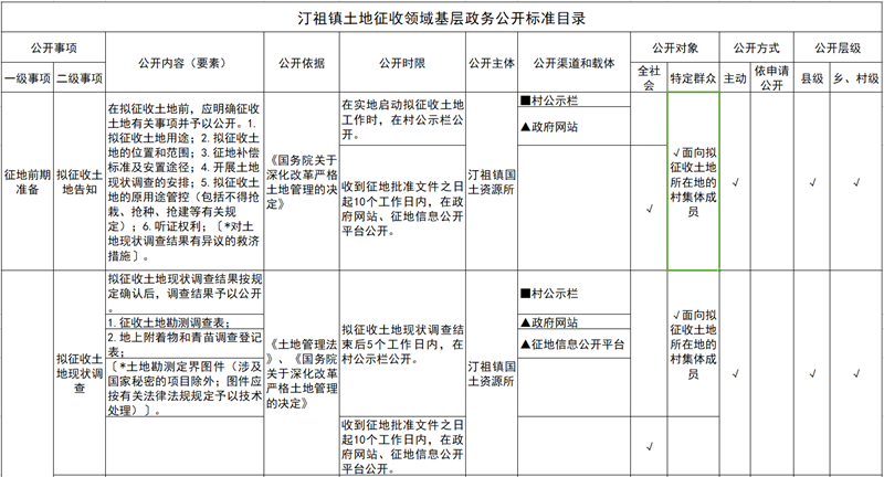 汀祖镇土地征收领域基层政务公开标准目录