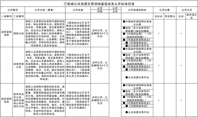 汀祖镇公共资源交易领域基层政务公开标准目录
