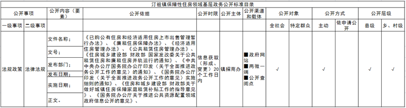 保障性住房领域基层政务公开标准目录