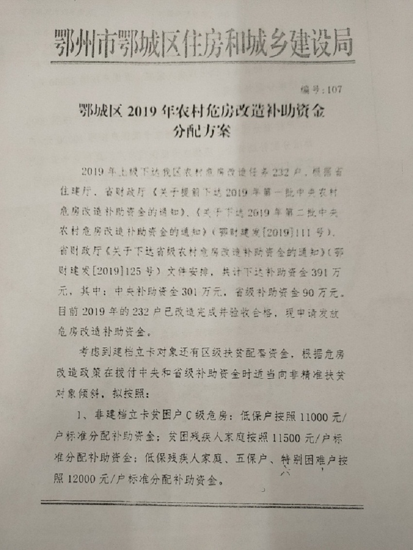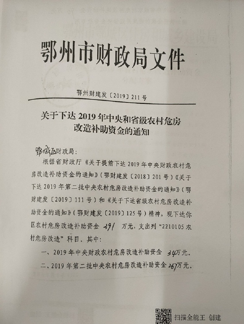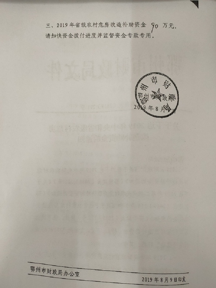 关于下达2019年中央和省级农村危房改造补助资金的通知