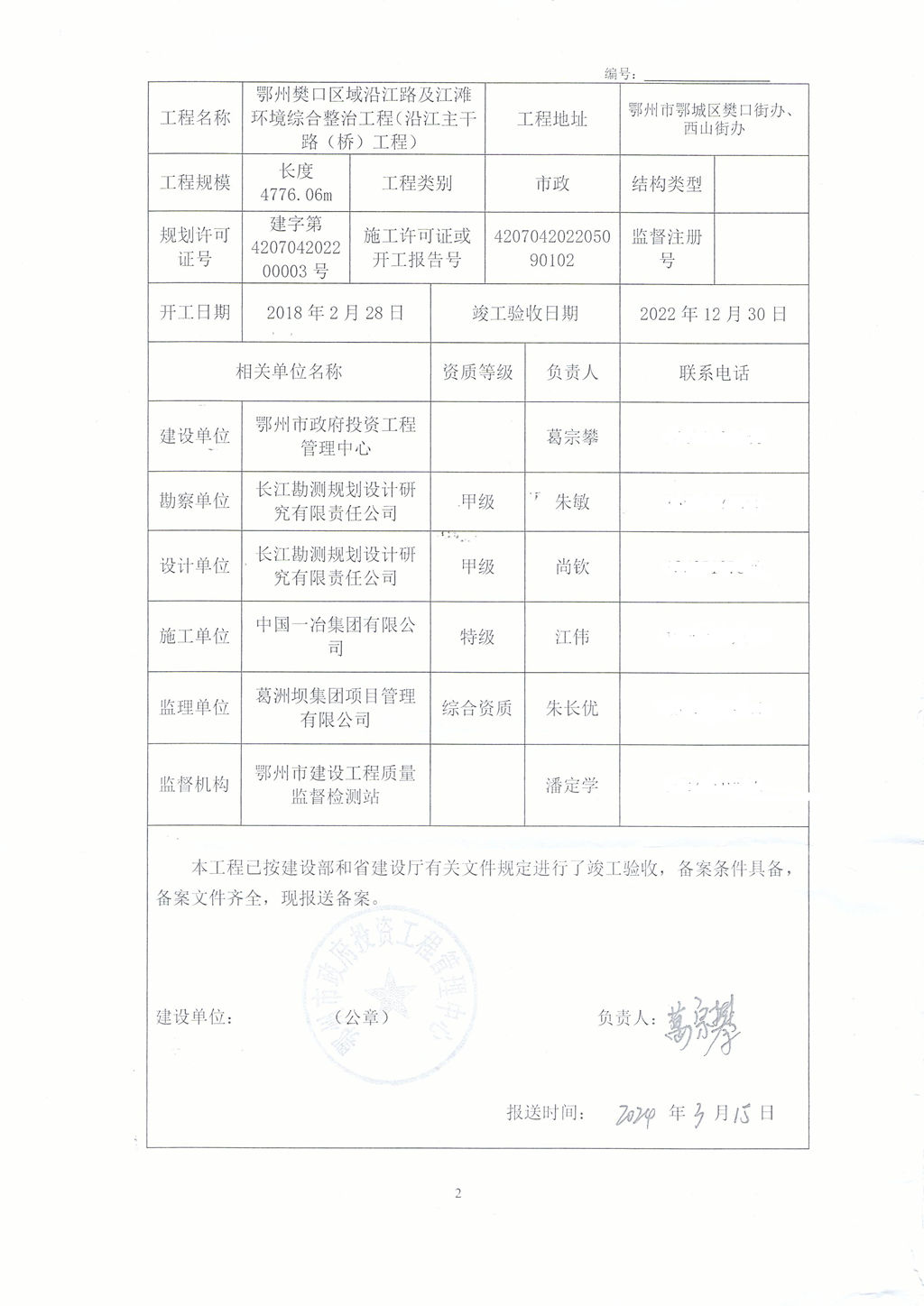 2024年工程竣工验收审批备案结果——鄂州樊口区域沿江路及江滩环境综合整治工程(沿江主干路(桥)工程)