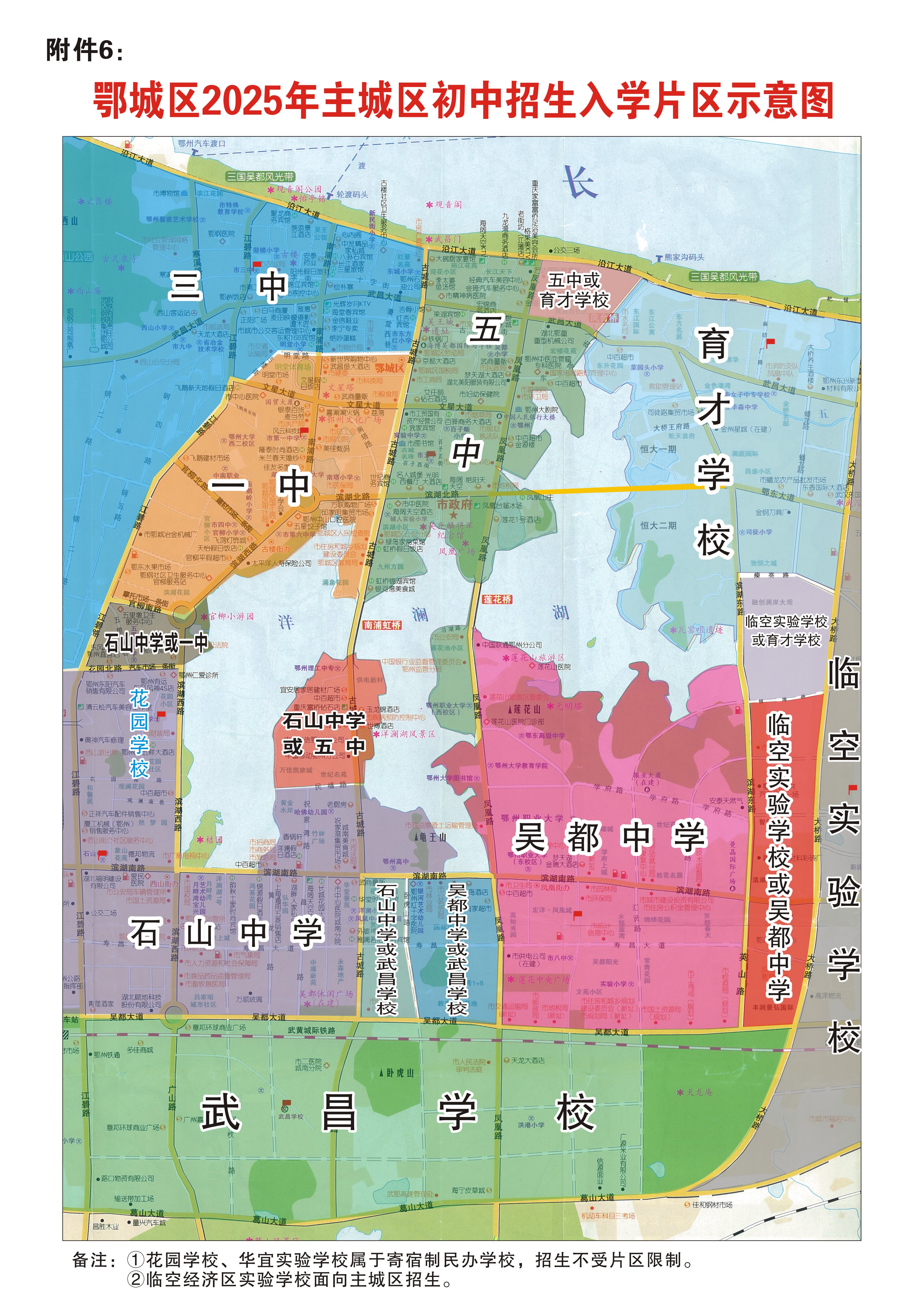 6.鄂城区2025年主城区初中招生入学片区示意图