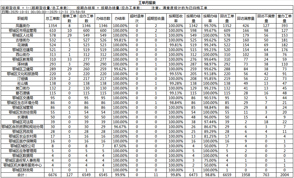 鄂城区12345专线工单四季度办理情况汇总表