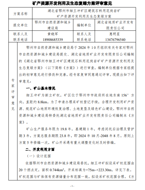 【矿山生态修复】湖北省鄂州市细王冲矿区建筑石料用花岗岩矿矿产资源开发利用及生态复绿方案