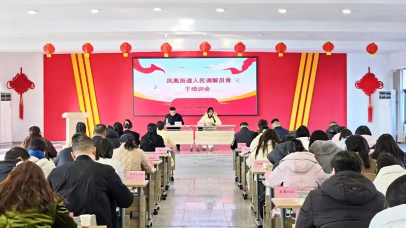 1月8日上午,凤凰街道在滨湖社区会议室举办2026年度调解骨干培训会,旨在进一步提升街道调解队伍的专业素养与实务能力。来自街道及各村、社区的48名专职调解员与调解骨干参加。
