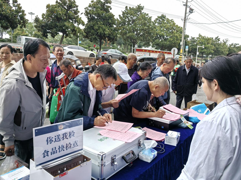 活动现场通过悬挂主题横幅、设立咨询台、摆放科普展板等多种形式,营造出浓厚的宣传氛围。工作人员向群众发放了200余份食品安全知识手册,并围绕日常饮食注意事项、食源性疾病预防、反餐饮浪费等实用知识,为前来咨询的市民进行了耐心讲解,引导大家树立文明、健康、理性的消费理念。不少群众表示,这些知识贴近生活,非常“接地气”。现场还开展了“你点我检,你送我检”现场活动,邀请群众通过扫码参与食品安全问卷调查,线上线下共回收有效问卷120余份,聚焦群众关心的重点食品类别,为后续针对性抽检提供了依据。同时,食品快检车同步运转,当日共完成17批次食用农产品快速检测,结果全部合格,不少拎着菜篮子的居民现场送检蔬菜、水果等样品,检测人员当场反馈结果,让群众买得放心、吃得安心。