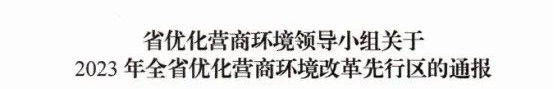 根据《关于2023年全省优化营商环境改革先行区的通报》,