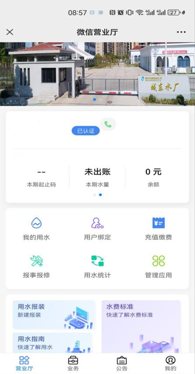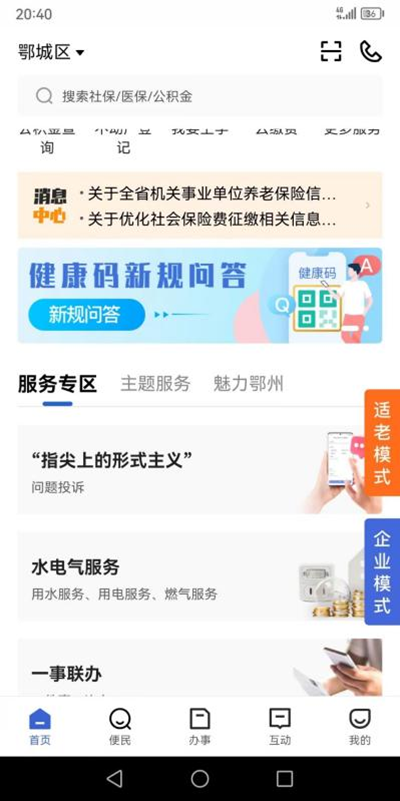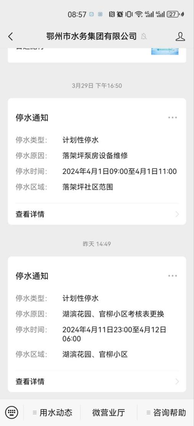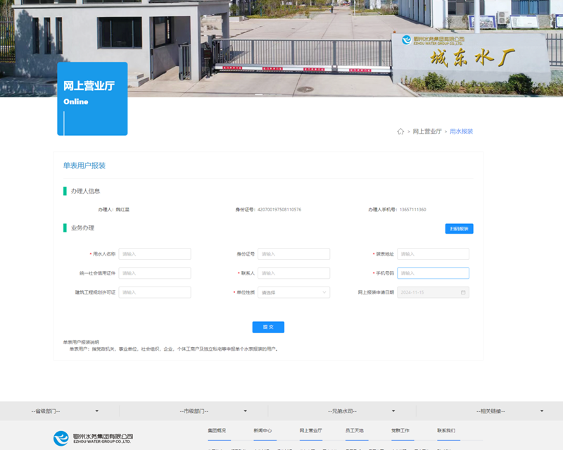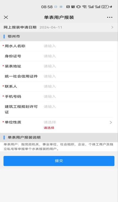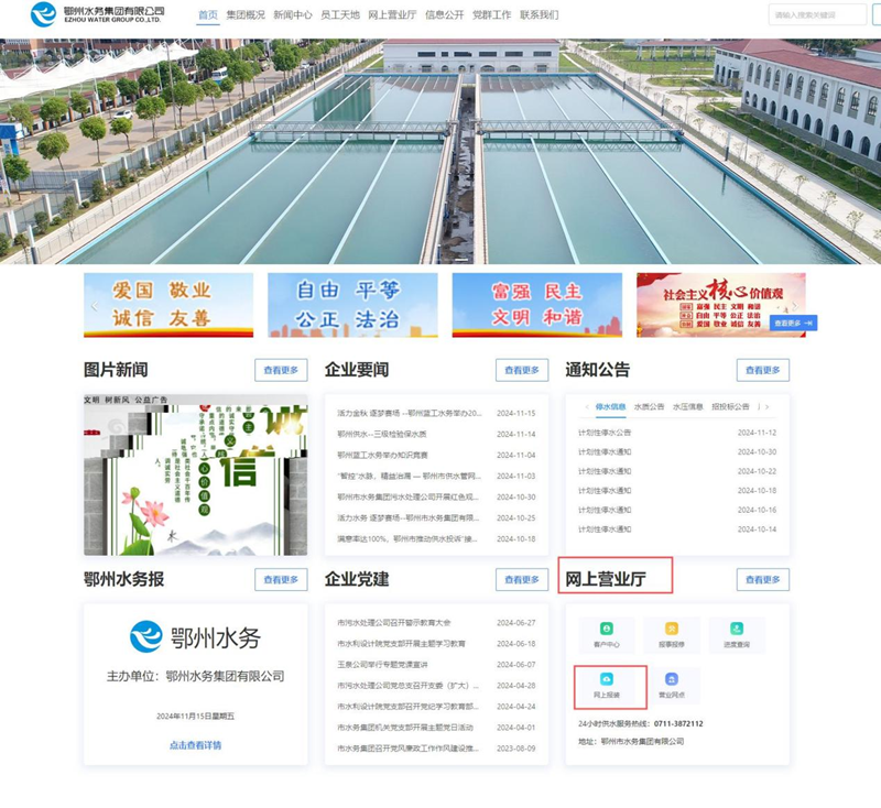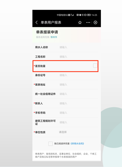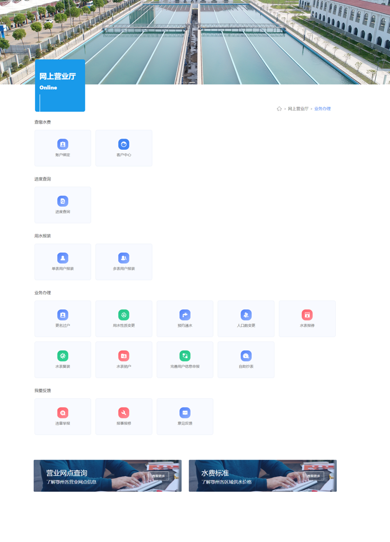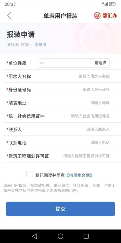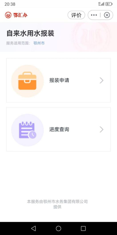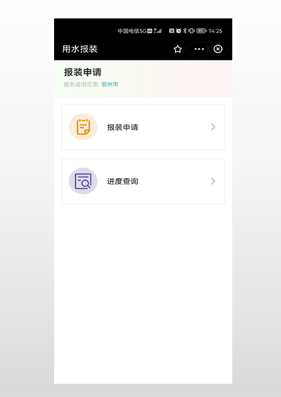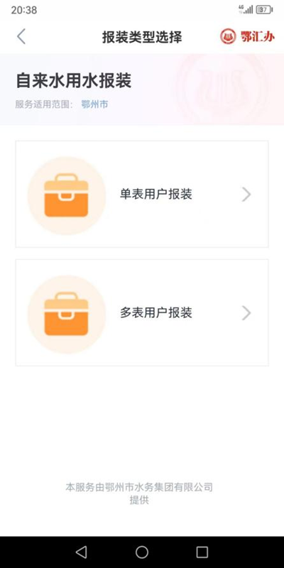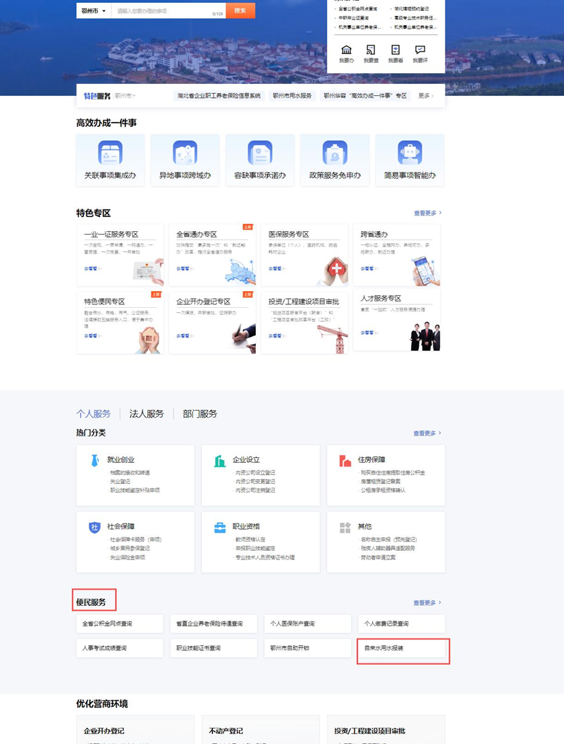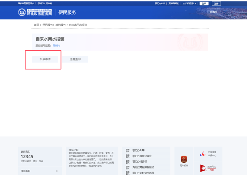 第二步:定位到鄂州市选择便民服务中的用水报装: