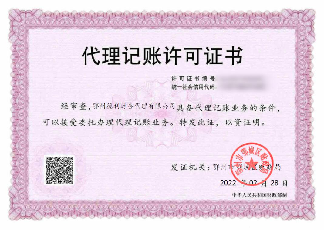 2月28日,鄂城区财政局给德利财务代理有限公司发出了我区第一张代理记账许可电子证照,标志了我区真正实现了代理记账行业审批全流程电子化办理。