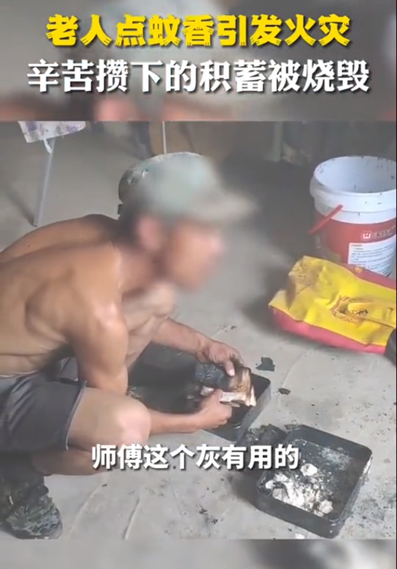 2022年6月17日上午,江西九江市都昌县一村民家中,因户主点蚊香引燃桌子导致房屋着火,户主存放在家中的8万多现金被烧毁。