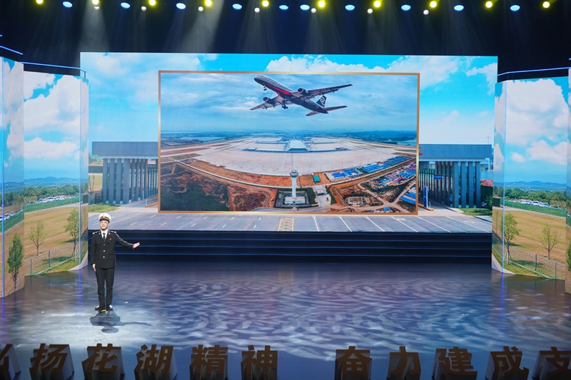 临空经济区党工委委员、管委会副主任汪涛作为土生土长的鄂州人、花湖机场核心建设者,讲述了花湖机场从无到有、从蓝图到枢纽的奋斗历程;参与花湖机场征迁工作的基层干部黄晨,回顾了“鄂州建市以来规模最大、时间最紧”的征迁之战,那份“舍小家为大家”的家国情怀,让不少观众悄然拭泪。