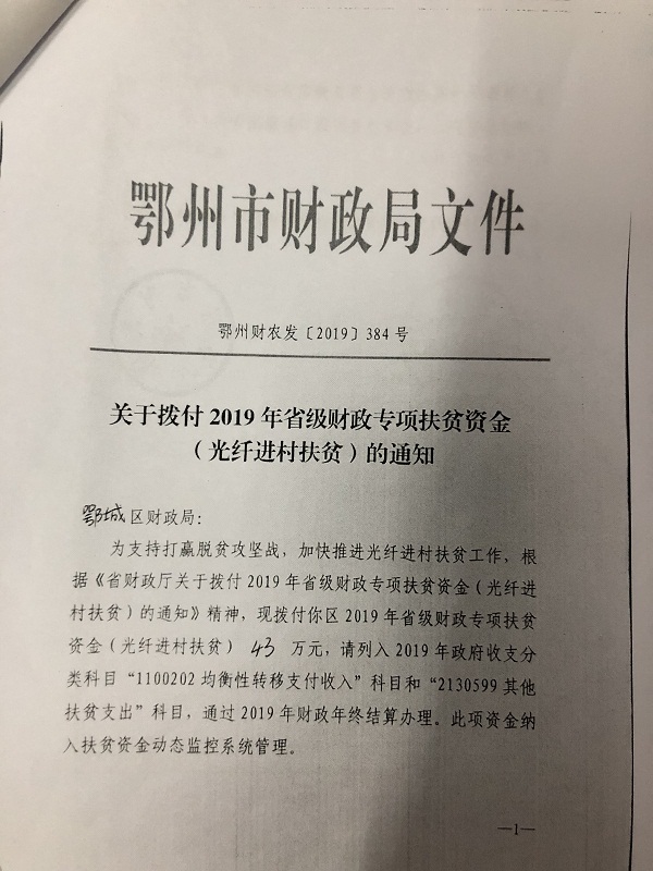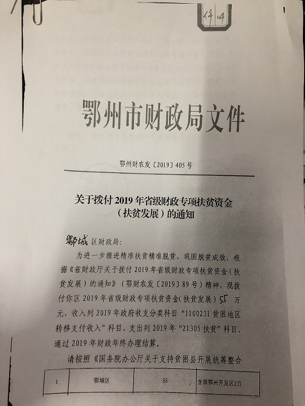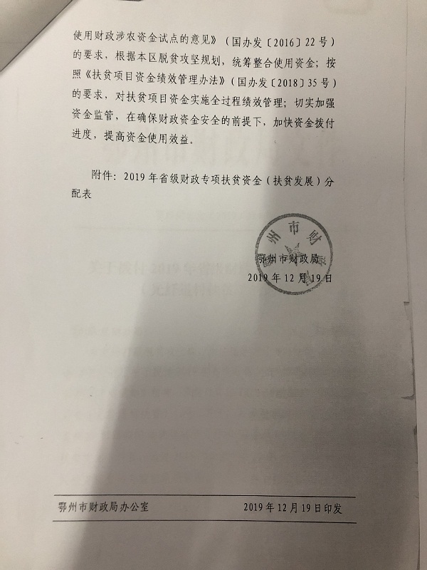 关于拨付2019年省级财政专项扶贫资金(扶贫发展)的通知