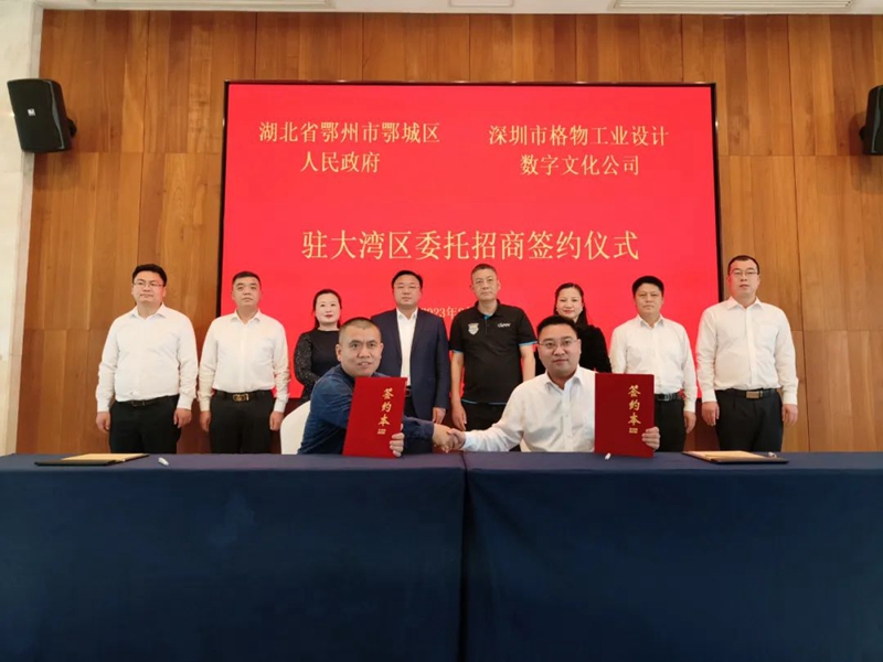 期间,鄂城区政府与深圳市格物工业设计数字文化公司签订驻大湾区委托招商协议,鄂城籍企业家、深圳市冠旭电子股份公司董事长吴海全见证签约仪式。鄂城区将持续推动市场化、社会化、专业化招商,密切政商互动联系,搭建以商招商平台,探索形成政府推动、协会联动、企业主动的招商选资新格局。