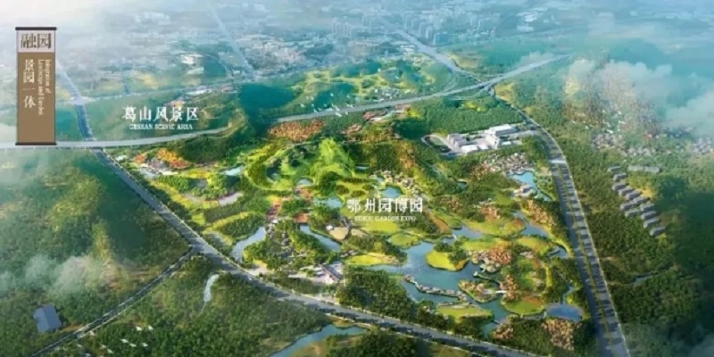 园博园选址于鄂州至黄冈城市南北向山水轴线的最南端,占地面积113.37公顷。北倚葛山风景区,东临鄂州大道,西接广山路,武鄂高速、武黄高速出口距离园博园主入口均不超过2公里。